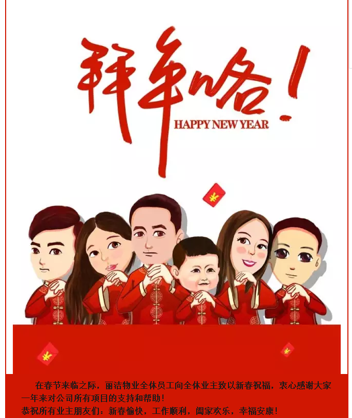 麗潔物業恭祝大家新春快樂!闔家團圓!