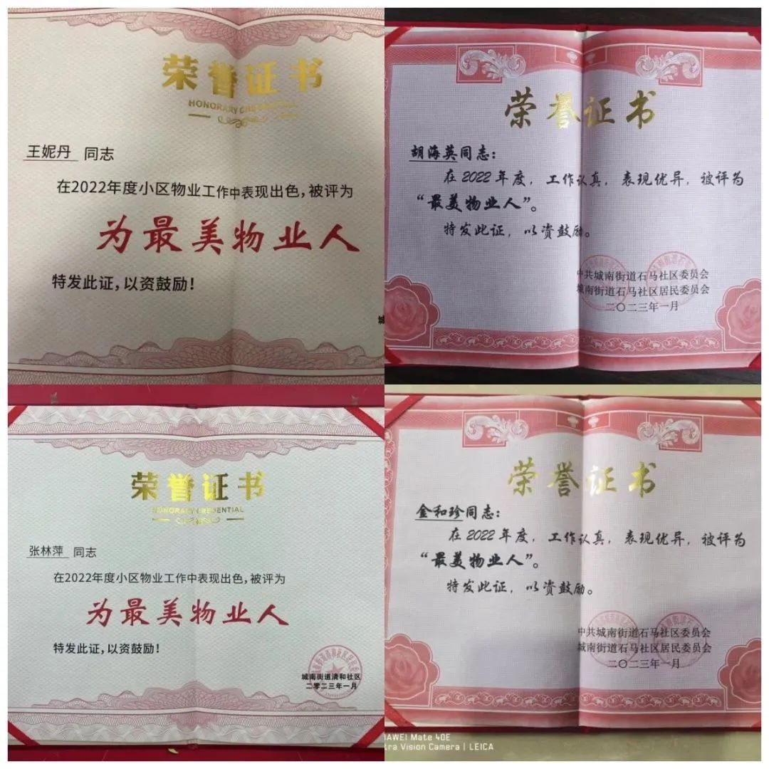 我司在管項目香江麗苑項目經(jīng)理金和珍、錦悅園項目經(jīng)理胡海英、中馳湖濱項目經(jīng)理張林萍、人才大廈項目經(jīng)理王妮丹被評為2022年度社區(qū)“最美物業(yè)人”,感謝她們在特殊時期舍小家顧大家,夜以繼日的忘我工作,以及在協(xié)同治理、共同抗疫、提升服務(wù)、助力創(chuàng)城等工作中做出的突出貢獻(xiàn)。
